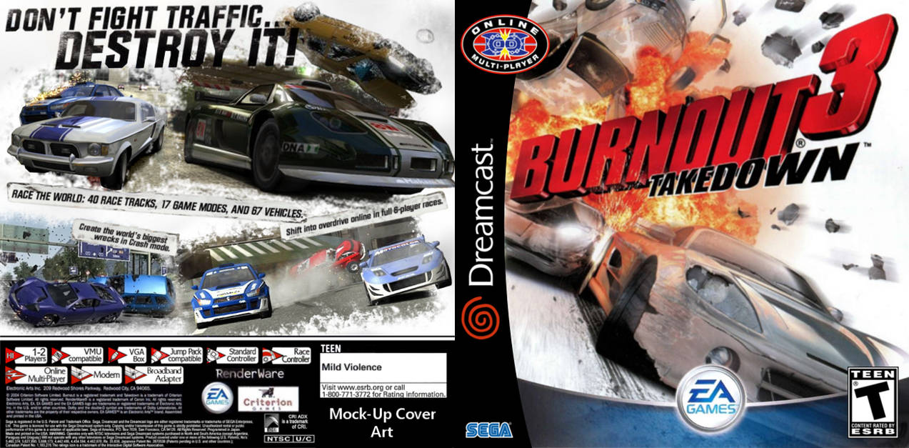 Burnout 3: Takedown iso for PS2 Emulator is a 2004 racing video game developed by Criterion Games and published by Electronic Arts. It is the third instalment in the Burnout series, which is characterised by fast-paced arcade racing.